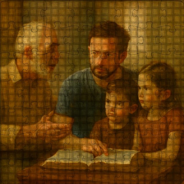 Um pai experiente, e um pastor orientam um jovem pai a educar e orientar os filhos de acordo com os ensinamentos bíblicos.